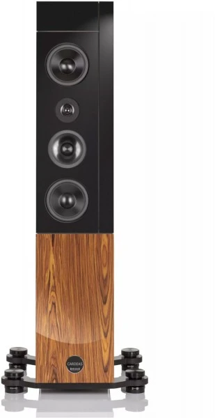 Die Cardeas ist ein Vier-Wege-Lautsprecher mit unserem neuen Multi-Sandwich-Gehäuse. Im Inneren besteht das asymmetrische Gehäuse aus einem High-Tech Waben-/Multiplex- Sandwich. Die Außenseite ist mit einem Glas-Elastomer-Verbund verkleidet. Dadurch wird das Gehäuse unglaublich steif und es verfügt über eine hohe interne Dämpfung. Die inneren Verstrebungen bestehen ebenfalls aus High-Tech-Wabenplatten. Eigenklang ist damit ausgeschlossen.