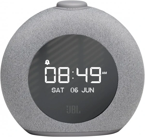 Lass dich von JBL Pro Sound wecken. Mit seinem markanten runden Design, LED-Umgebungsbeleuchtung und DAB/DAB+/UKW-Radio rundet der JBL Horizon 2 dein Schlafzimmer ab. Ein großes LCD-Display zeigt die Uhrzeit, Weckeinstellungen und Radioinformationen deutlich an, während der stylische Stoffbezug perfekt mit jeder Inneneinrichtung harmoniert. Du hast die Wahl zwischen einer Reihe von Wecktönen oder deinen Lieblingssendern über DAB, DAB+ oder UKW. Mit dem benutzerfreundlichen Drehknopf lassen sich die Weckzeit, Schlummerfunktion, Lautstärke und die Umgebungsbeleuchtung anpassen bzw. ein- und ausschalten. Der JBL Horizon 2 mit zwei praktischen USB-Ports zum Aufladen von Geräten ist einfach perfekt für deinen Nachttisch.
