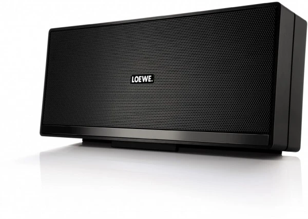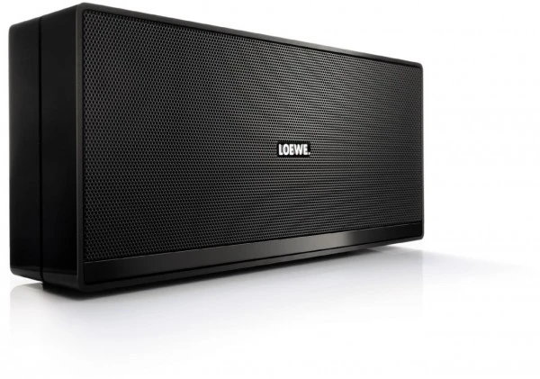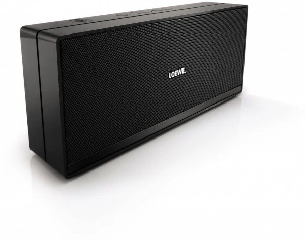Ideal für unterwegs: Der schwarze LOEWE Speaker 2 go Multimedia-Lautsprecher mit Bluetooth.